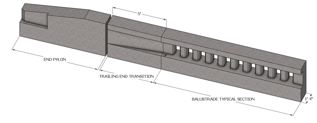 The New Jersey Department of Transportation (NJDOT) is currently developing standard details for a concrete balustrade railing. We are considering a railing design (see Figure 1 below) that has been successfully crash-tested to the MASH TL-4 level (eligibility letter B285 is attached for your reference).