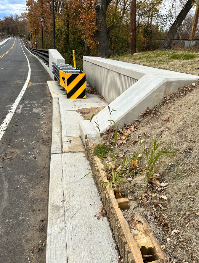 Recently, I received an inquiry about reducing the curb reveal of the retaining wall. However, upon reviewing the site, I noticed that the crash cushion is obstructed by a retaining wall, which seems unusual to me. The distance between the quad guard and the retaining wall is approximately 35 ft.